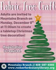 Adults are invited to Mountains Branch on Monday, Dec. 8th at 11:00 am to create a tabletop Christmas tree decoration! Registration is required.